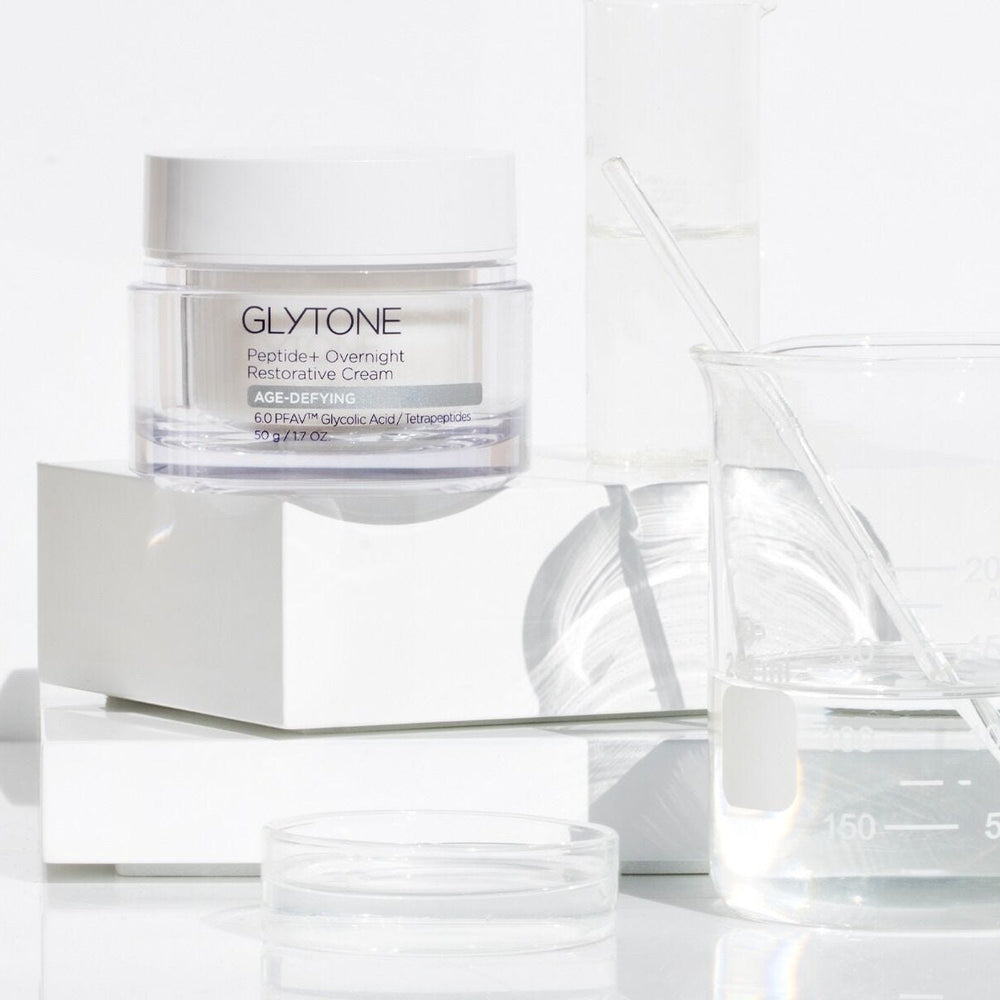 In the evening, apply to face, neck and décolleté. For best results, use with the Glytone Age-Defying collection.