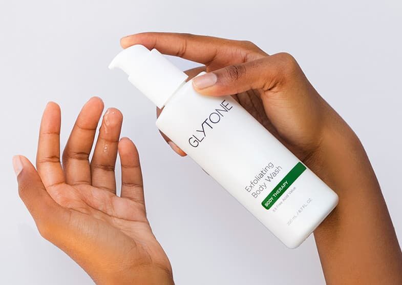 Exfoliating Body Lotion is a Glycolic Acid-infused body lotion that exfoliates and hydrates, combining the first two steps in your routine. Exfoliating Body Lotion also soothes the skin with allantoin to prevent irritation.